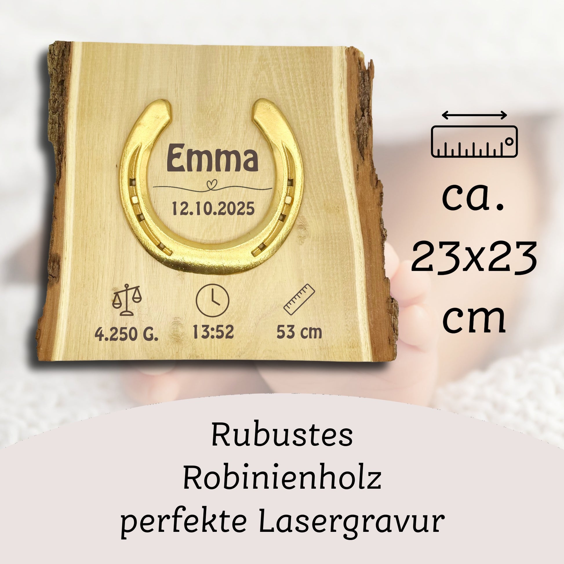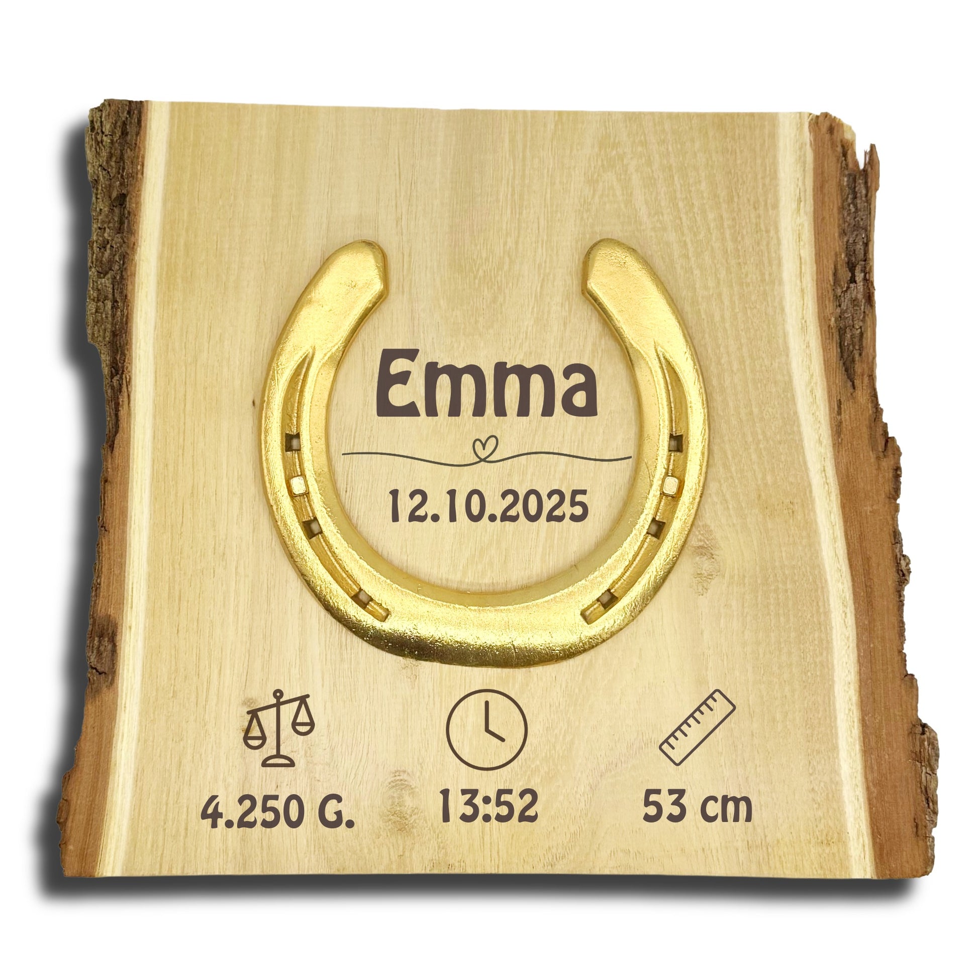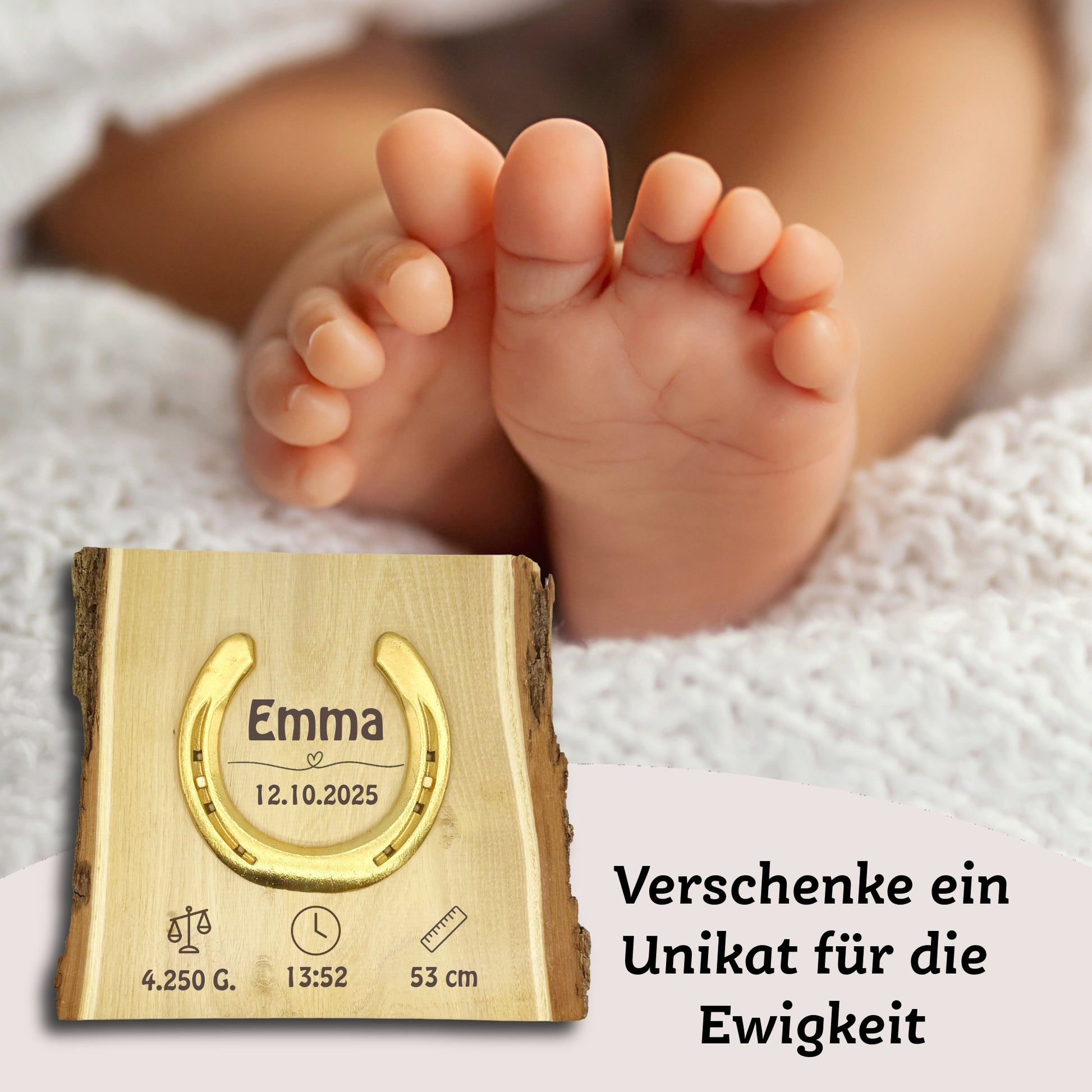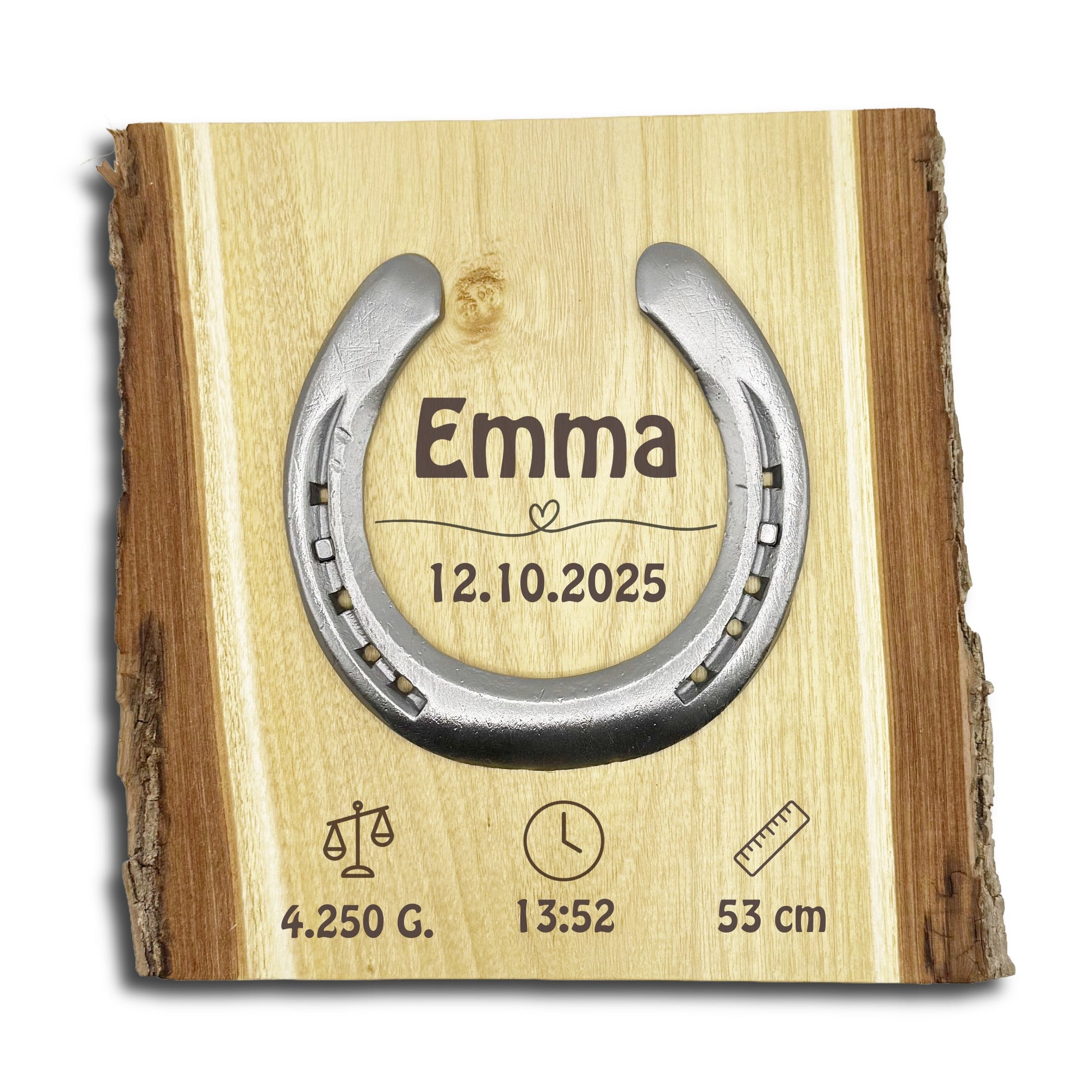 • Personalisierte Gravuren: Name & Geburtsdatum im Hufeisen