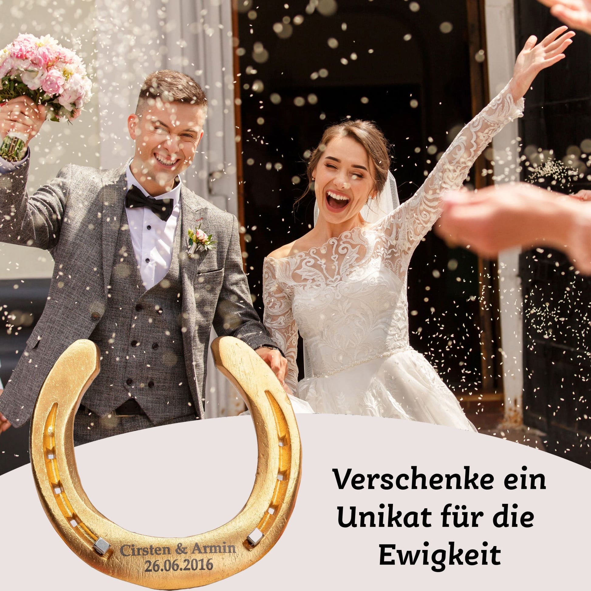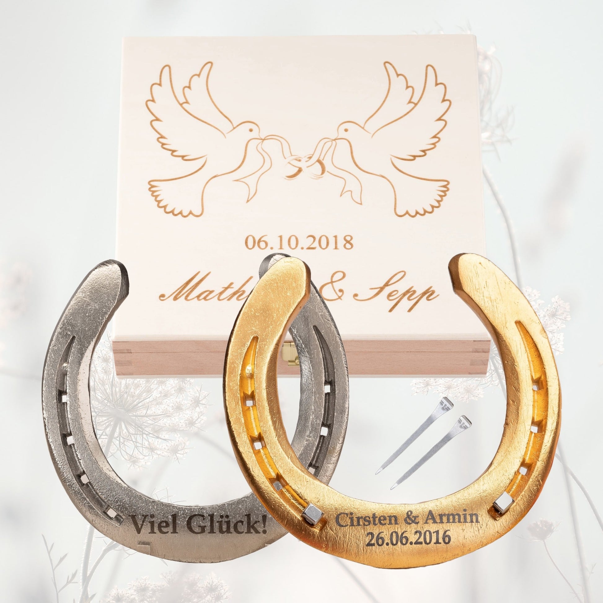 Glückshufeisen zur Hochzeit – mit personalisierter Gravur & Geschenkbox nach Wunsch