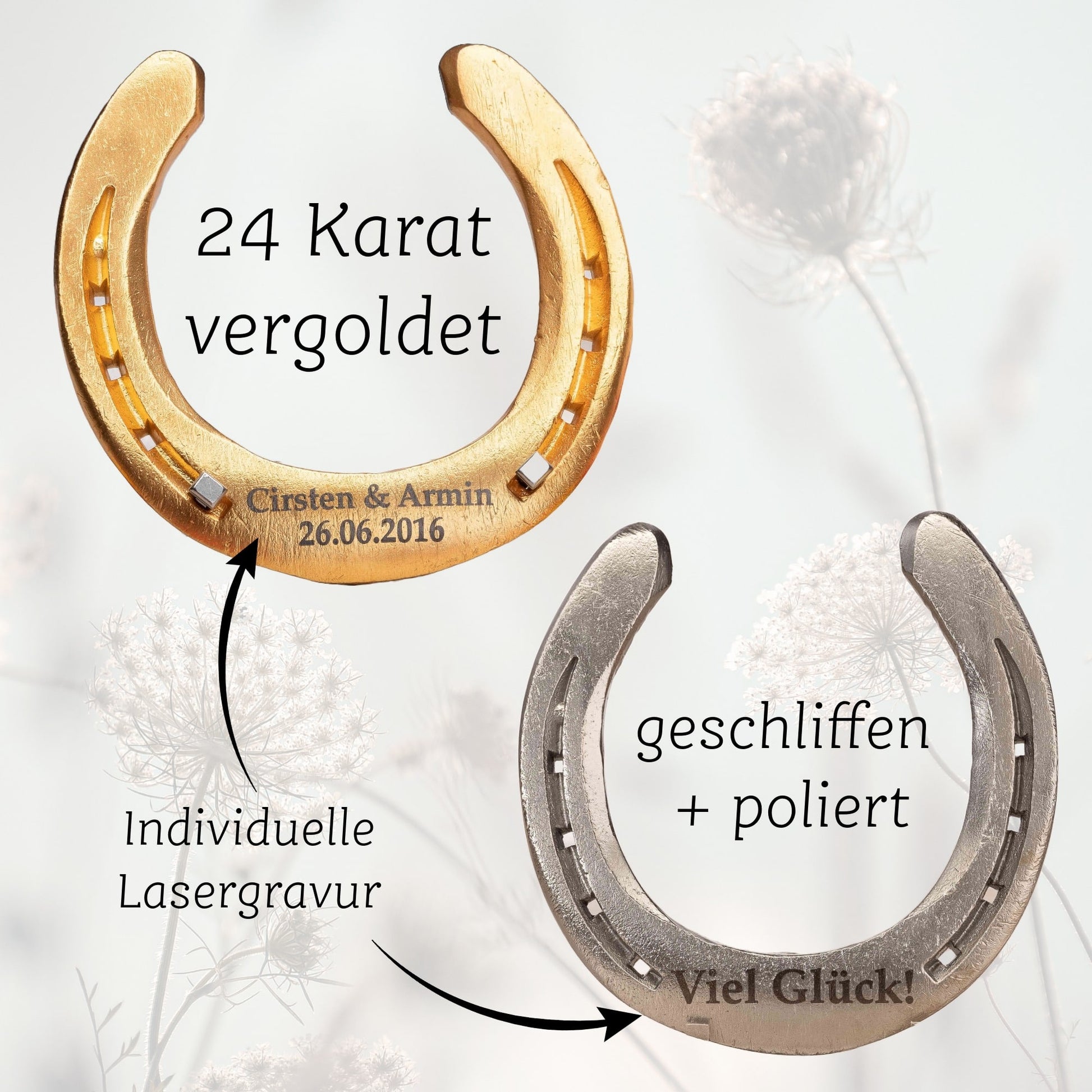 Optional kannst du das Hufeisen mit einer edlen 24-Karat-Vergoldung veredeln – für einen besonders hochwertigen Eindruck.