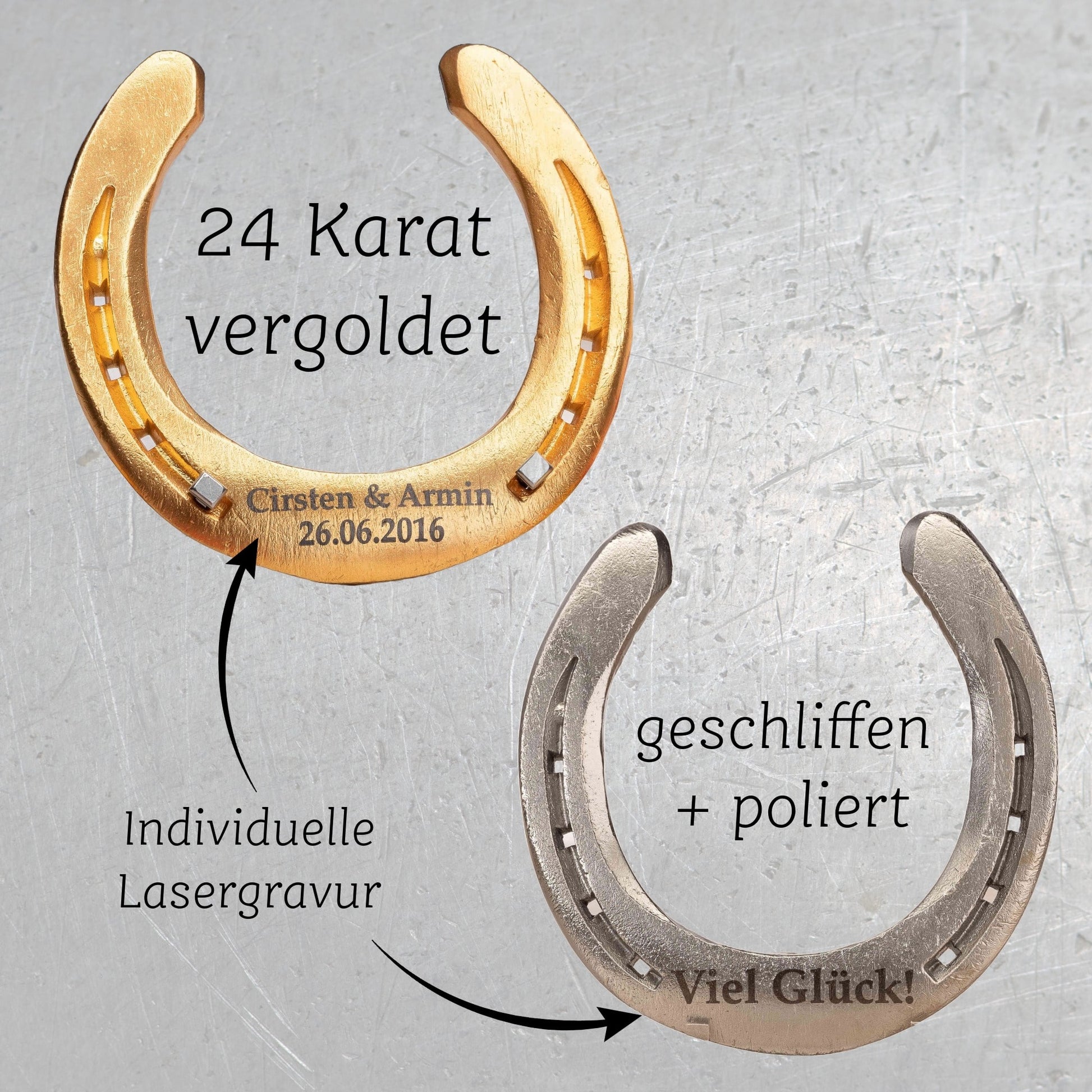 Die Entscheidung zwischen einem vergoldeten oder einem traditionellen Hufeisen ermöglicht es, das Geschenk individuell auf das Jubelpaar abzustimmen. Eine persönliche Note wird durch die Möglichkeit der Personalisierung hinzugefügt – sei es durch eine Gravur von Namen, Datum oder einer liebevollen Botschaft. Diese besondere Aufmerksamkeit macht das Hufeisen zu einem unvergesslichen Geschenk.